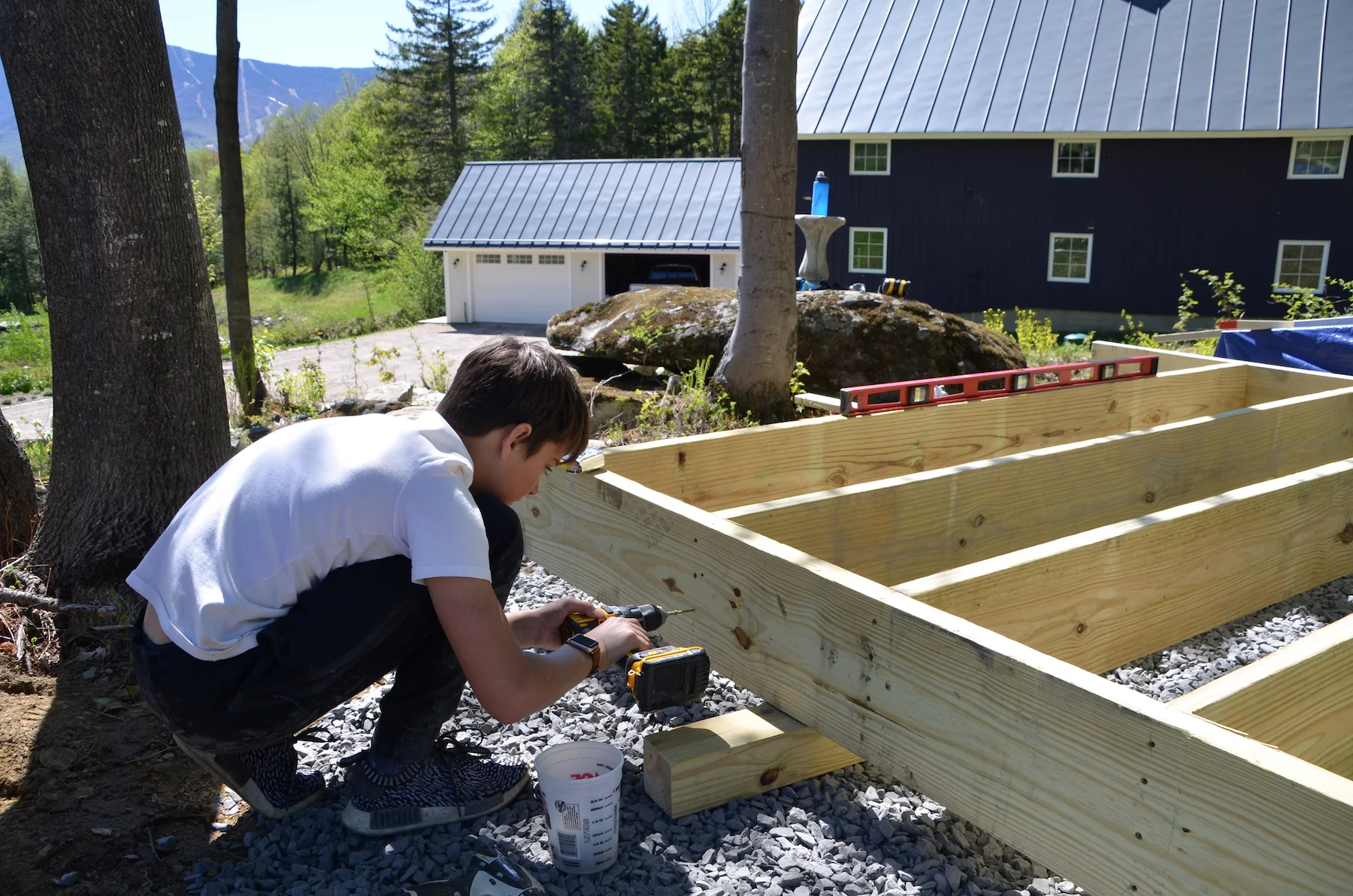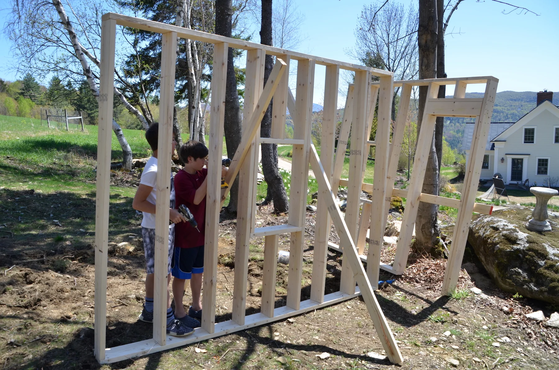 This project was designed and built by Alex, 6th grade, over the course of 9 months from December 2017 - August 2018. The design phase occurred over the winter months with Alex learning a 3D modeling software called SketchUp. His final drawing project involved creating a scale model of a house using dimensional lumber, which would be built in the spring and summer months. Construction in Alex's backyard started in April 2018. Each week provided an opportunity to reference and implement the plans he created and to learn construction skills in the framing of an 8'x14' shelter.