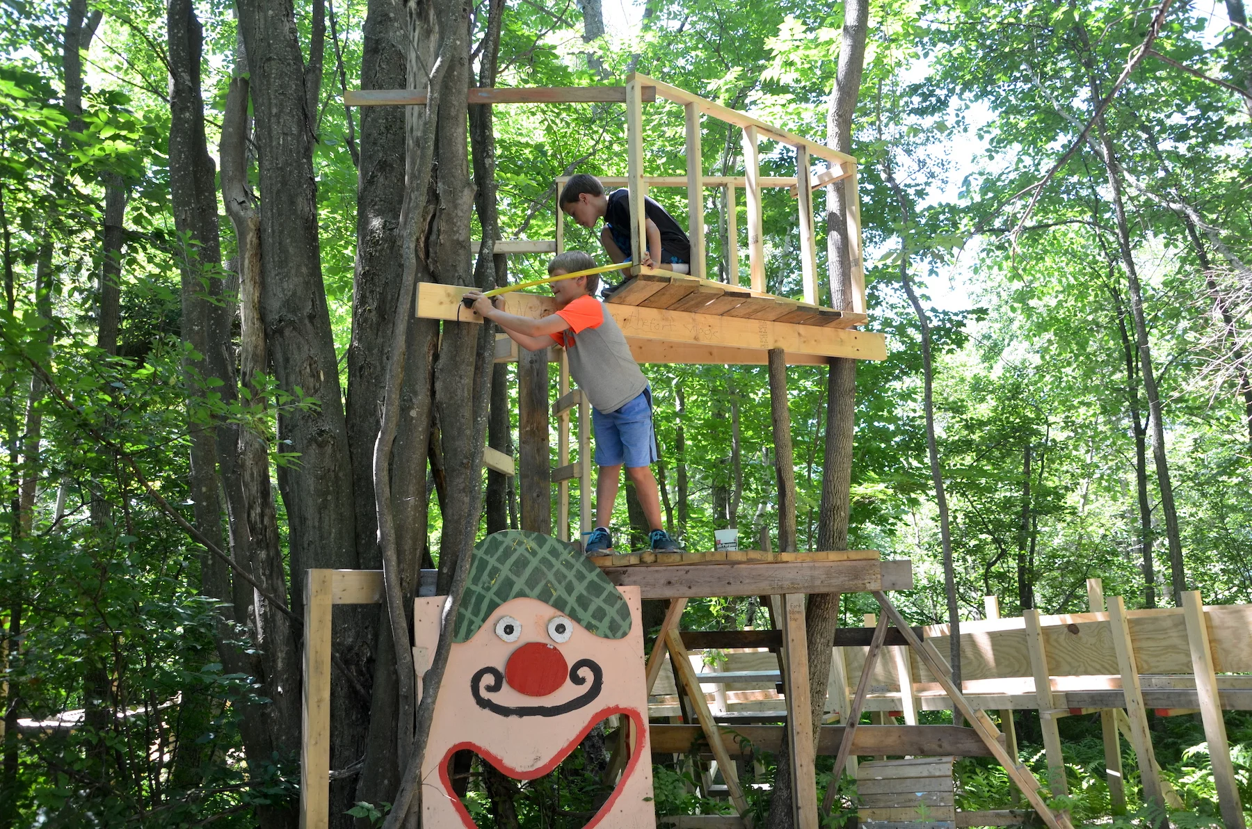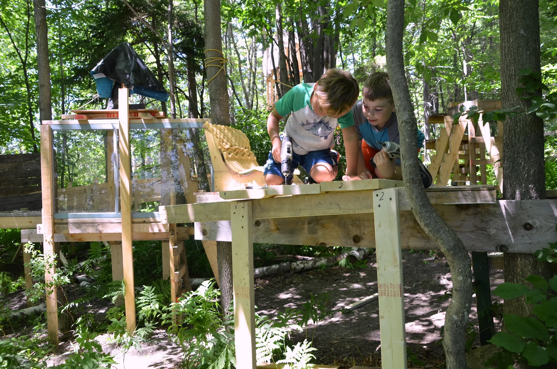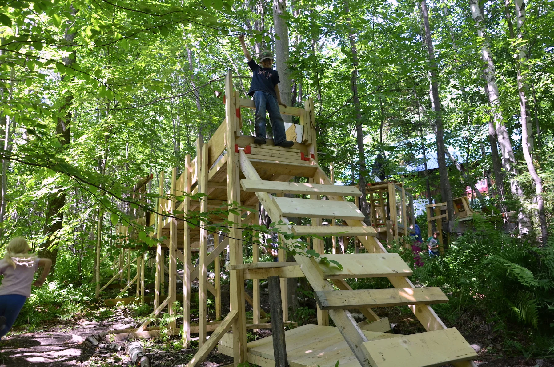 This program was inspired by an adventure playground in Berkeley, CA. Adventure playgrounds, sometimes called “junk playgrounds,” give kids the freedom to build and play among forts and climbing structures.
