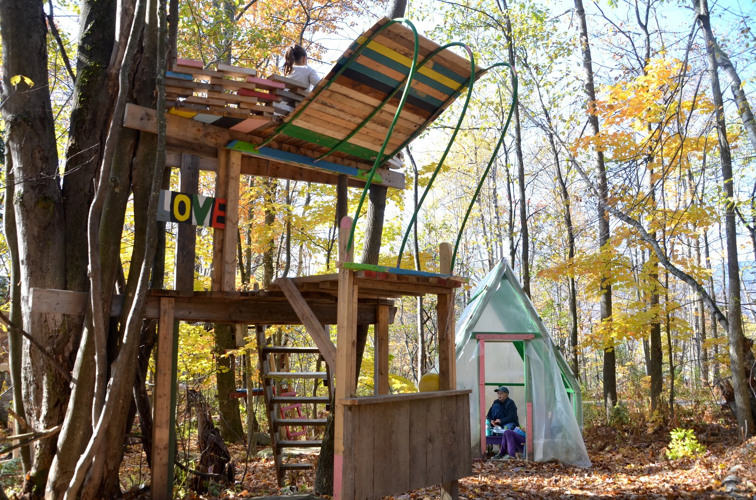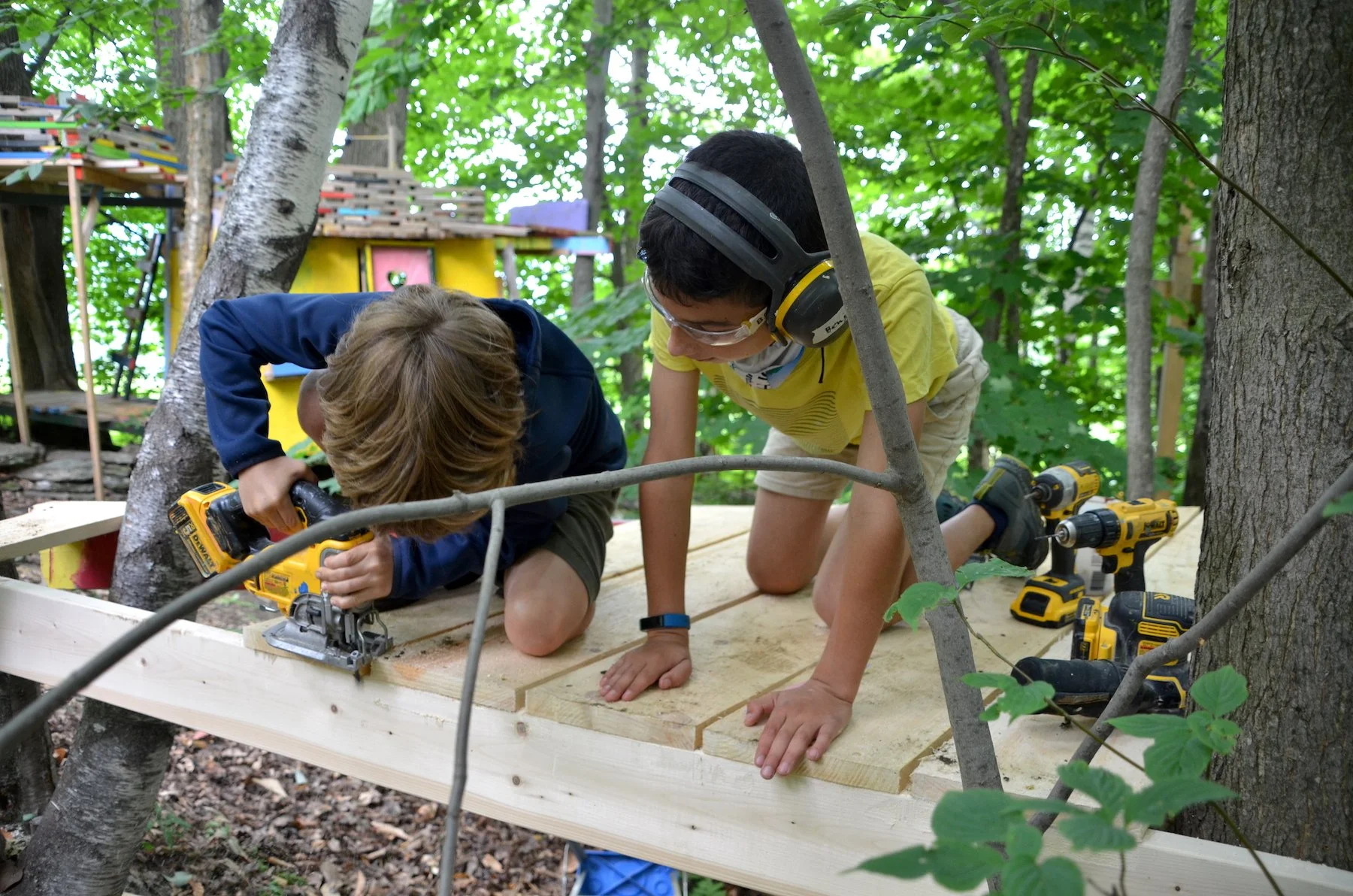 Build forts, ladders and bridges in the woods. In this program students have the freedom to choose where and what they want to build. They have the option to make renovations on existing structures, or build something from scratch in an entirely new space. Each class is balanced with tool safety and building demonstrations to spark inspiration, and plenty of independent time to plan, gather materials and build with friends.