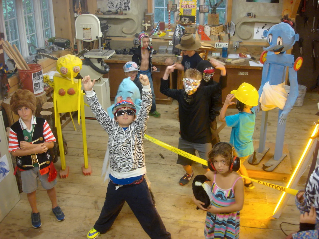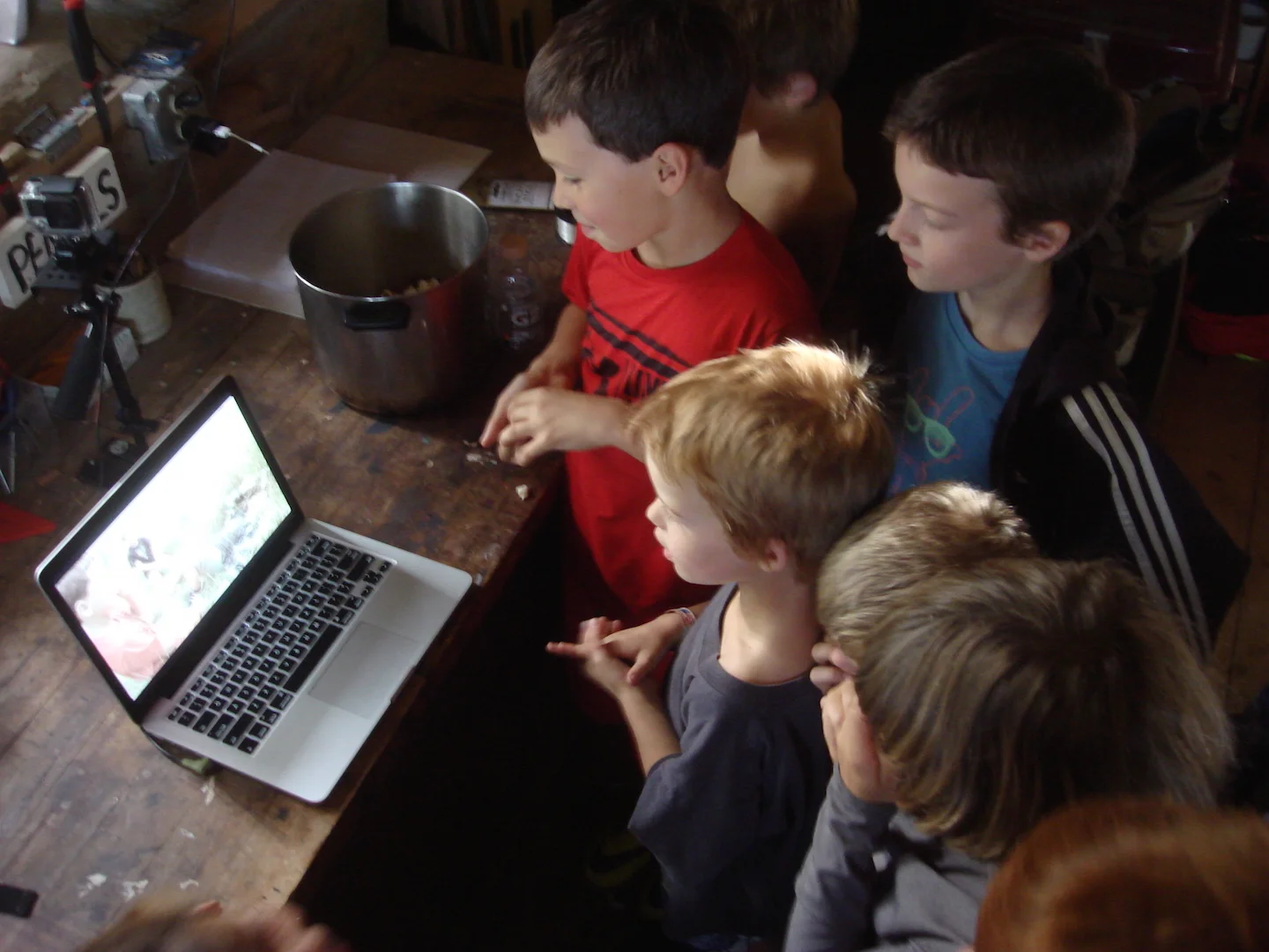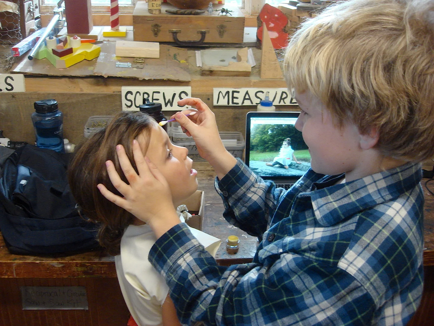 Over the span of 6 weeks, 10 kids made movies in the woods with a GoPro camera, iMovie editing software, costumes and face paint. The kids worked scene by scene, weaving their ideas together, taking turns filming and directing the action. Each week the group edited footage and developed the plot of each project spontaneously. The final production was called The Magical Yurt, a fantasy movie about a group of friends who travel to a mysterious land.