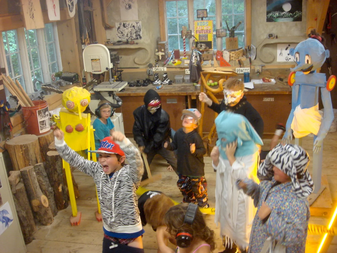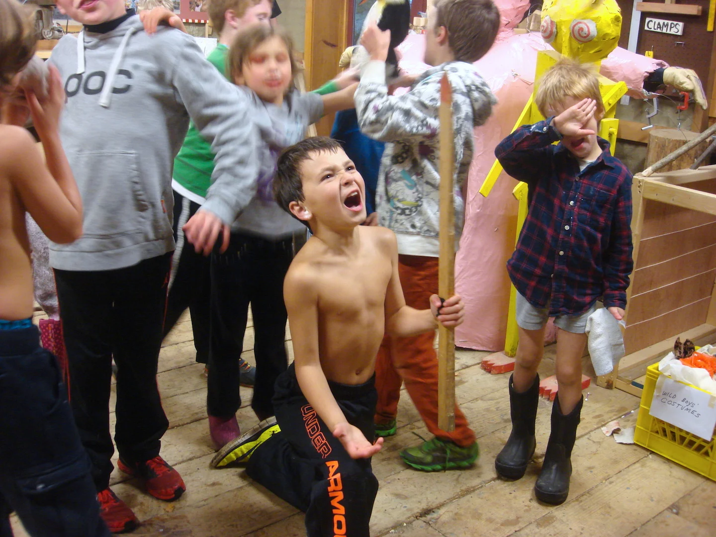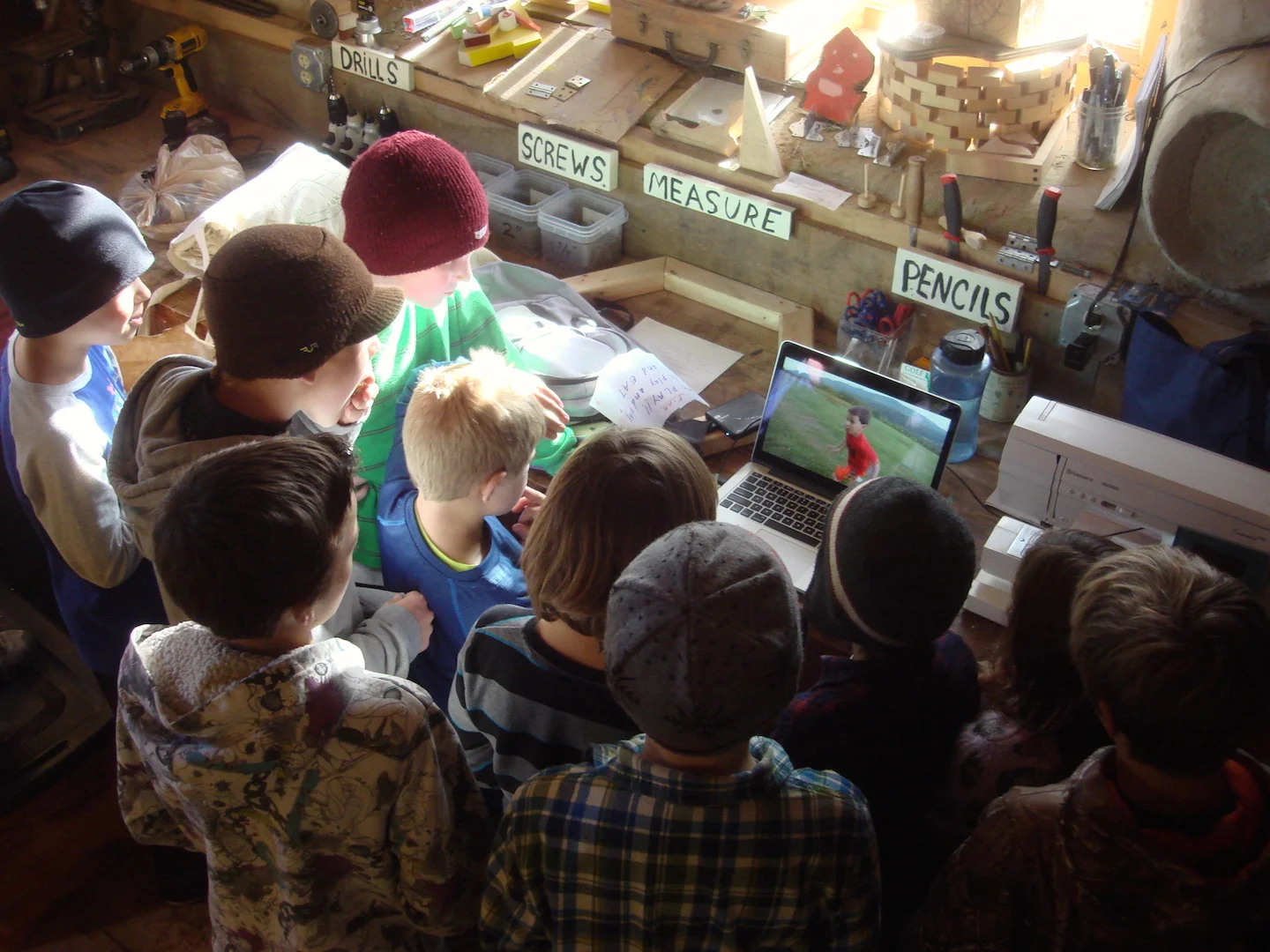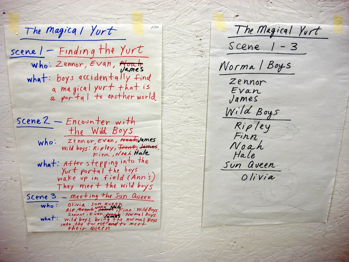 Over the span of 6 weeks, 10 kids made movies in the woods with a GoPro camera, iMovie editing software, costumes and face paint. The kids worked scene by scene, weaving their ideas together, taking turns filming and directing the action. Each week the group edited footage and developed the plot of each project spontaneously. The final production was called The Magical Yurt, a fantasy movie about a group of friends who travel to a mysterious land.