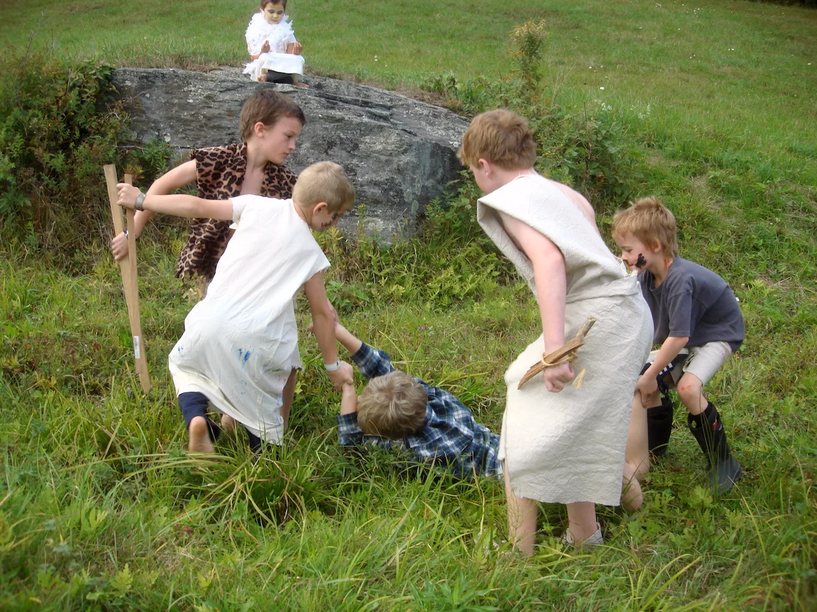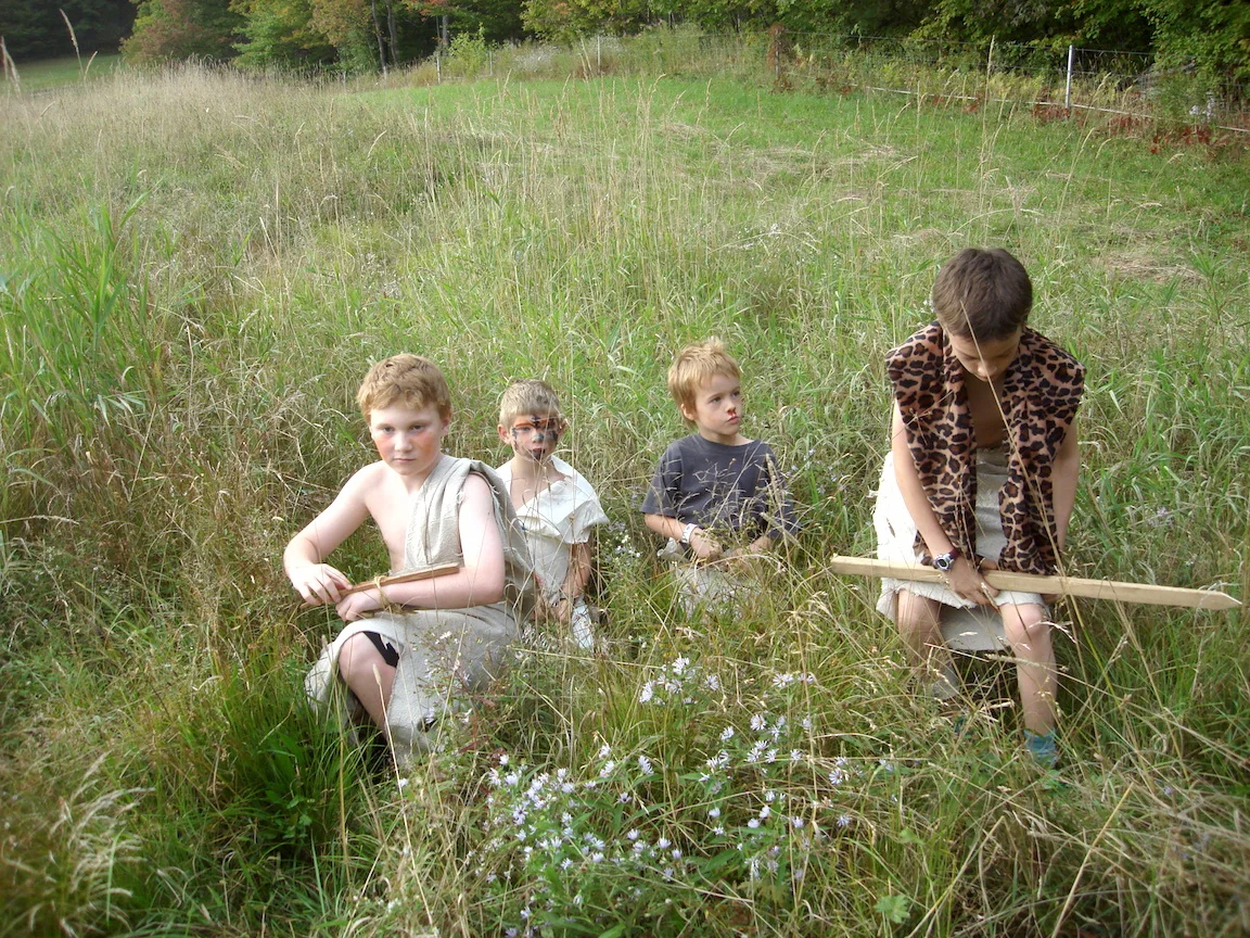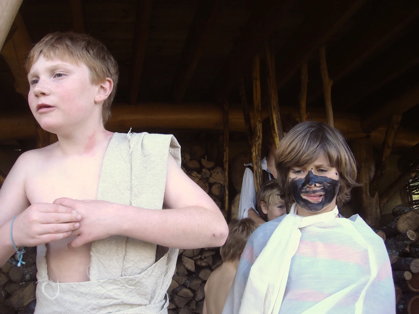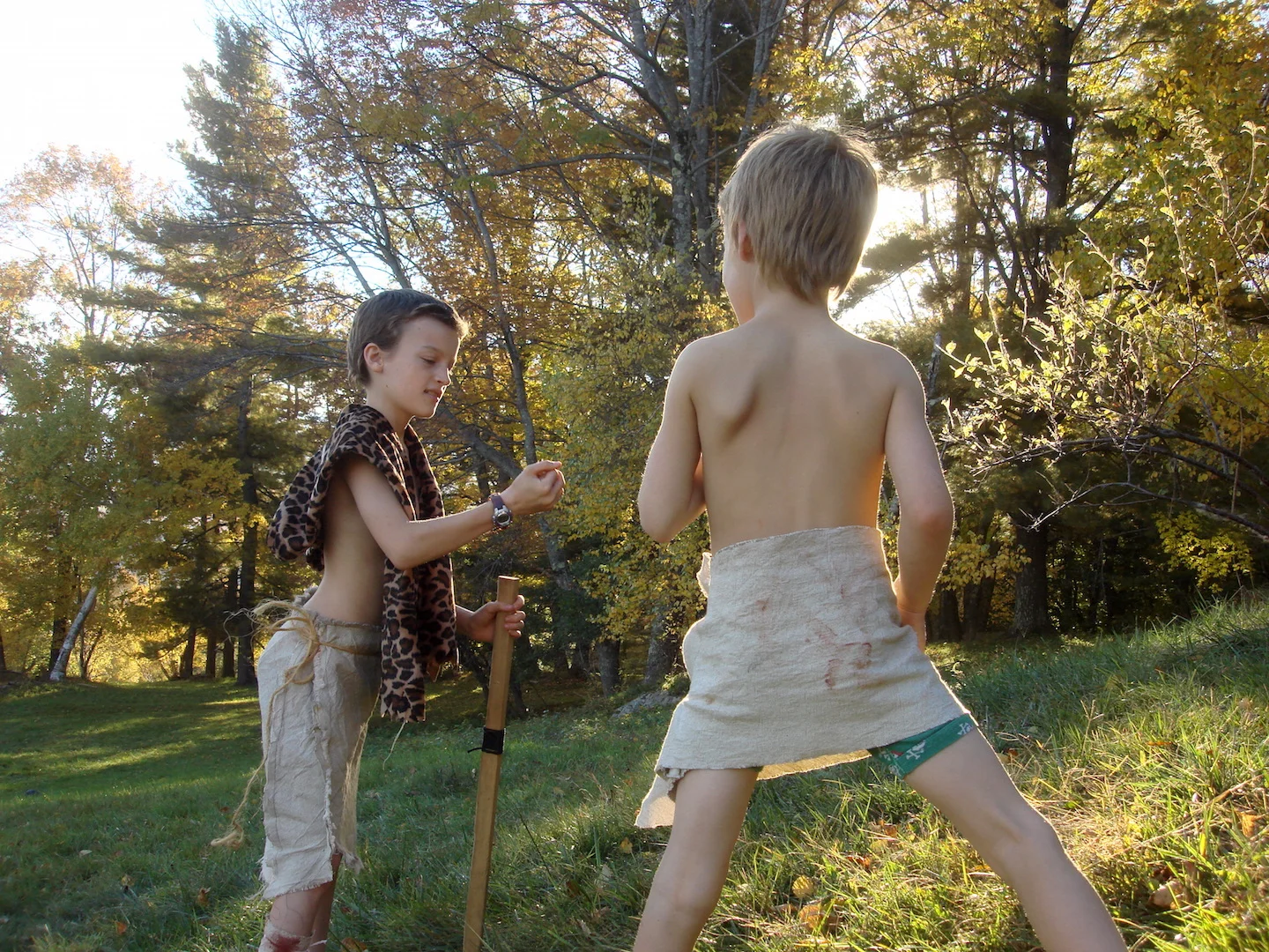 Today the kids filmed a chase scene which ensued after the captive boy (played by James) escaped from the dungeon. The Wild Boys ran down to the pond after the strangers. With the movie approaching completion we were able to edit a short trailer.