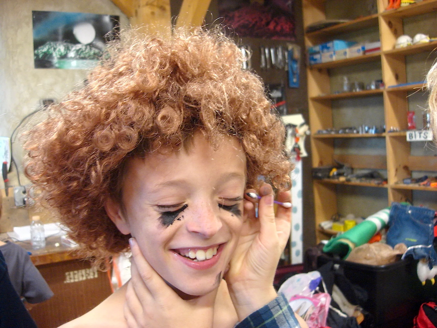 Kids marched up the hill for the second class of the Movie Making workshop. In order to introduce the lesson on story making, we watched a few selected examples of short movies made by kids on YouTube. One of the best examples was made by a 5th grade elementary school class in Colorado about mind control cookies. We looked carefully at how they set-up camera angles and how the video was edited. After a little bit of brainstorming our group came together on a storyline based on the costumes available. We acted and shot each scene a few times to get it just right. Unsurprisingly, the candy prop disappeared before the the camera was turned on.