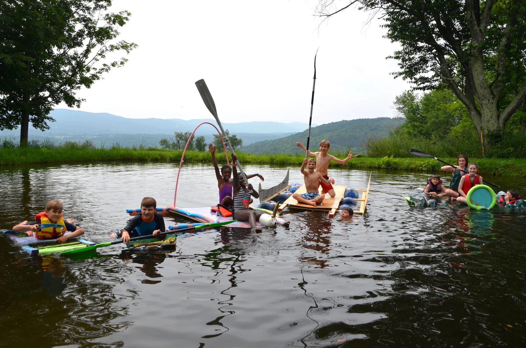 Week-long boat building experiment with recycled plastic bottles, duct tape, pool noodles and chicken wire.