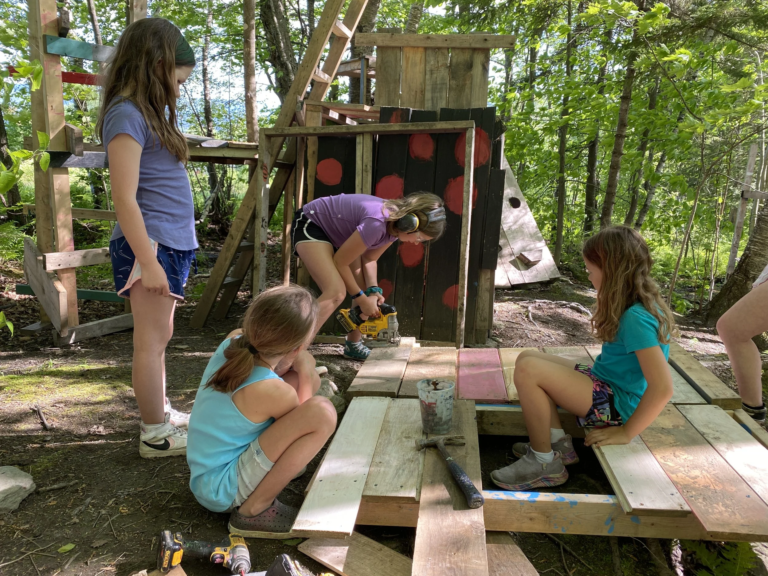 We are making a new place! Students (ages 10-14) have 7 acres of forest to explore and build their own interpretation of a shelter. Our days are full of trail making, landscaping, building, and dodgeball!